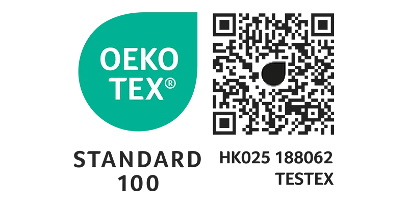 OEKO-TEX® Standard 100 is the standardised textile safety certification from the International Association for Research and Testing in the Field of Textile Ecology. It adopts the scientific testing of the contamination in textile products, production process assessment, and product quality assurance.