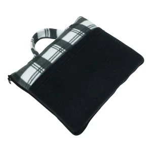 • Tartan Printed Fleece Picnic Blanket (Black,White)