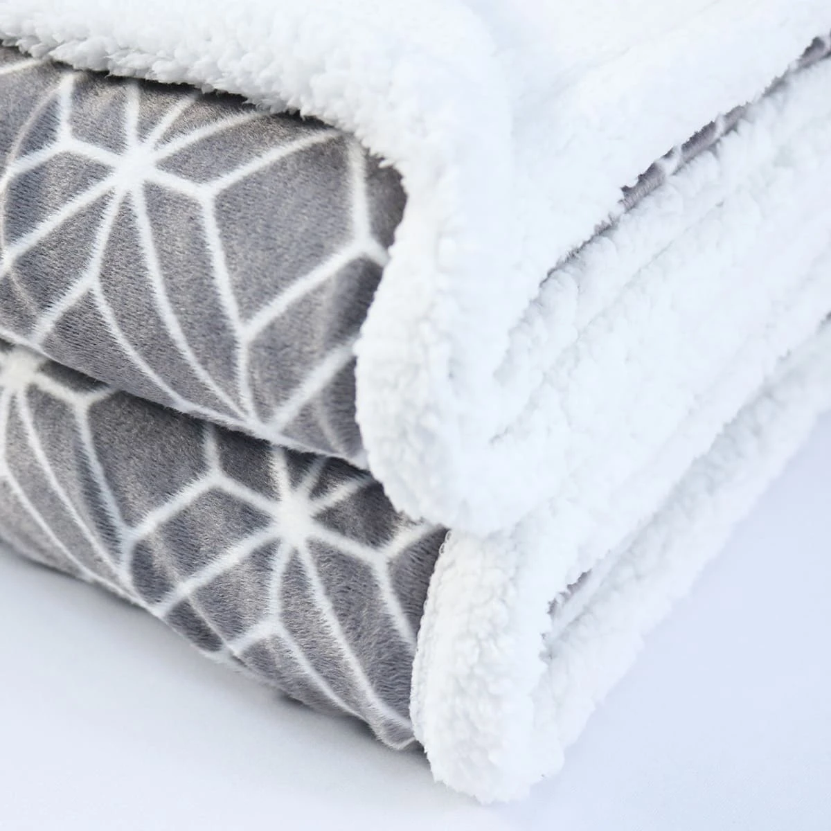 • Grey Diamond Pattern Printed Velfleece Reversible to Sherpa Blanket