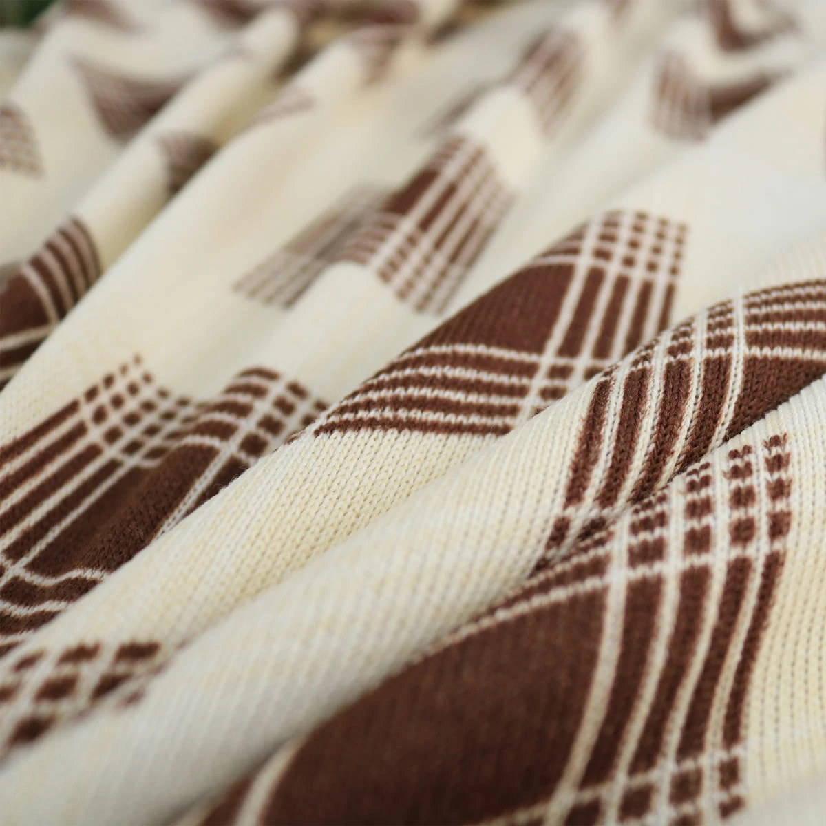 Tartan Pattern Printed Sweater Blanket (Brown,Cream)