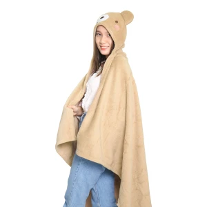 • Recycled Polyester Hooded Flannel Blanket with Bear Design (Brown)